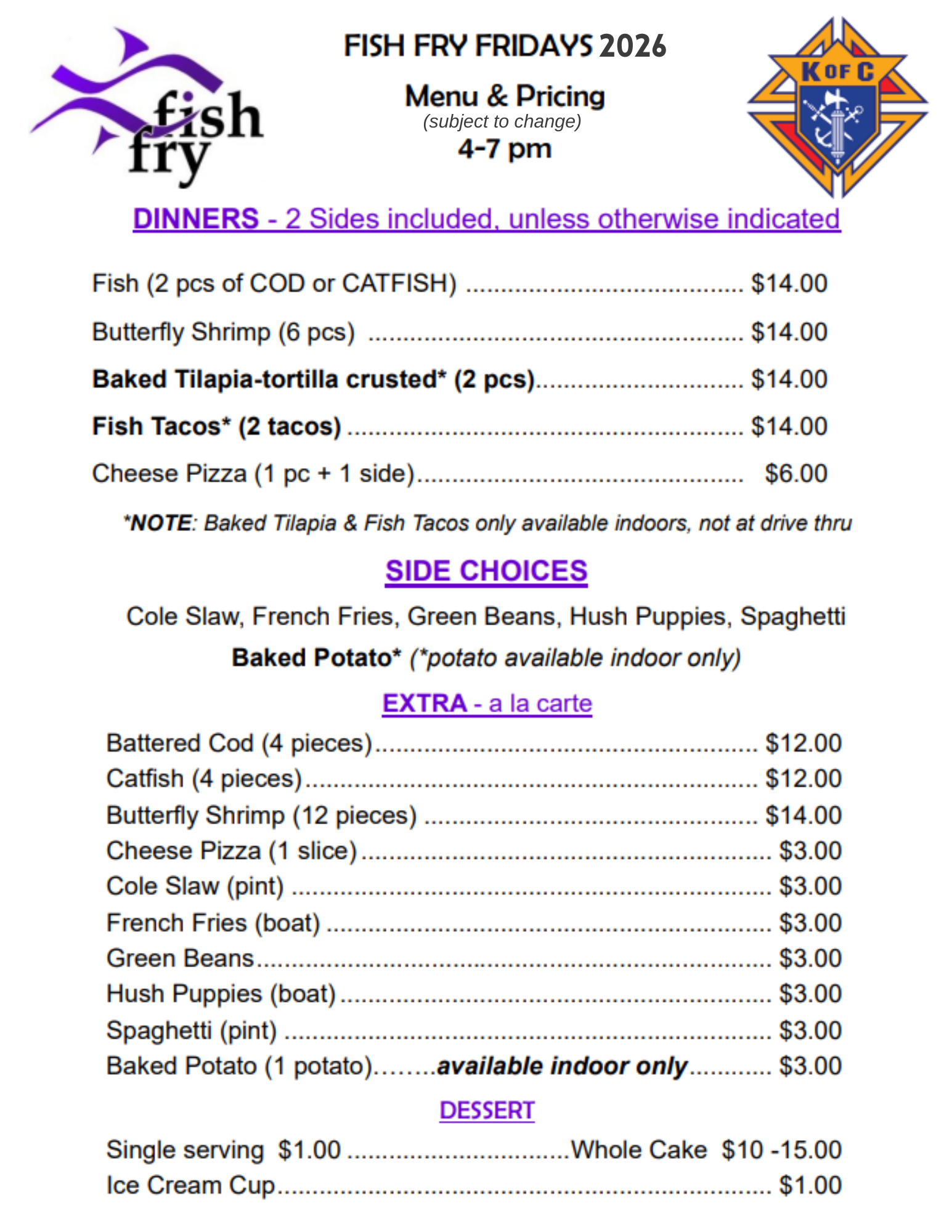Join us Fridays of Lent in the Parish Center or Drive Thru for delicious fish dinners. February 20-March 27.